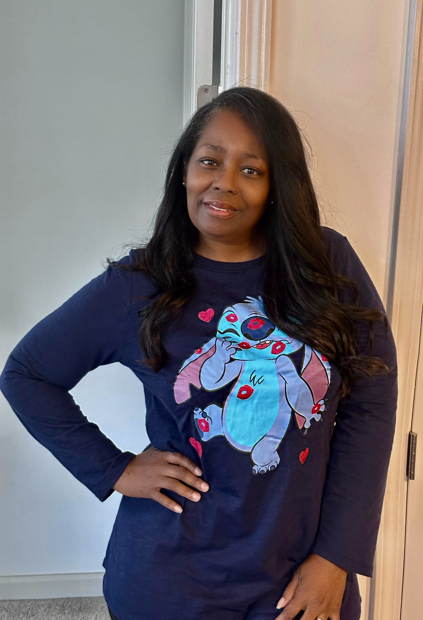 Next came the glitter Stitch long-sleeve tee, which brought an immediate smile to my face. Playful, whimsical, and full of personality, it’s the kind of piece that effortlessly lifts your mood the moment you put it on.